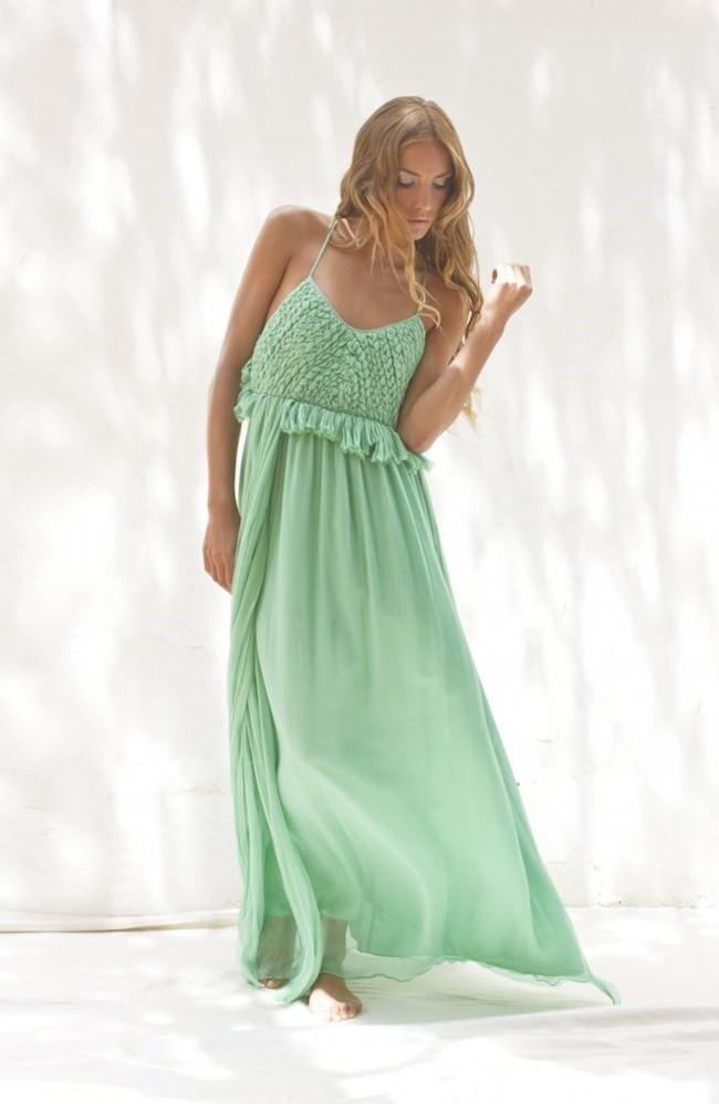 Vestido verde menta de tirantes con trenzados en el talle. Su precio es de 270 euros y es de María Roch.Vestido azul