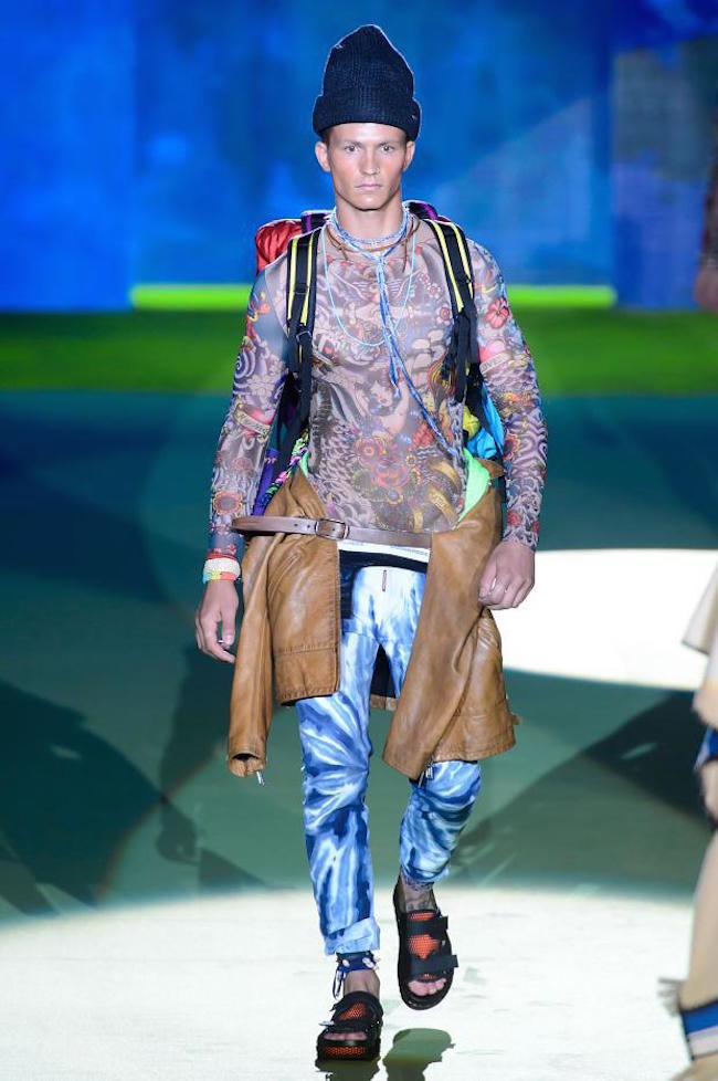 La piel tatuada al 100%, así es como ven los diseñadores a los chicos del verano 2016, todos los modelos lucieron una "segunda piel" con efecto de tatuaje. Encima de esto todo tipo de piezas, algunas impresionantes, para conseguir looks con mucha fuerza y bastantes prendas. Combinan pantalones con bermudas, un par de chaquetas vaqueras e incluso desabrochan el pantalón para dejar ver la ropa interior.