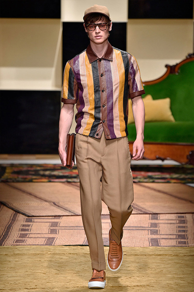 Desde que Massimiliano Giornetti tomó las riendas de Ferragamo está procurando diseñar propuestas que atraigan a una clientela más joven vistiéndola con prendas lujosas pero de aspecto más casual para adecuarse mejor al aire de los tiempos. Con un telón de fondo colorido y tropical, Salvatore Ferragamo desfiló durante la Milano Moda Uomo con una colección para la primavera-verano del 2016 que mezclaba prendas de inspiración deportiva compuestas por sneakers, gorras de baseball, y bombers con trajes con raya diplomática, pero con un nuevo twist.