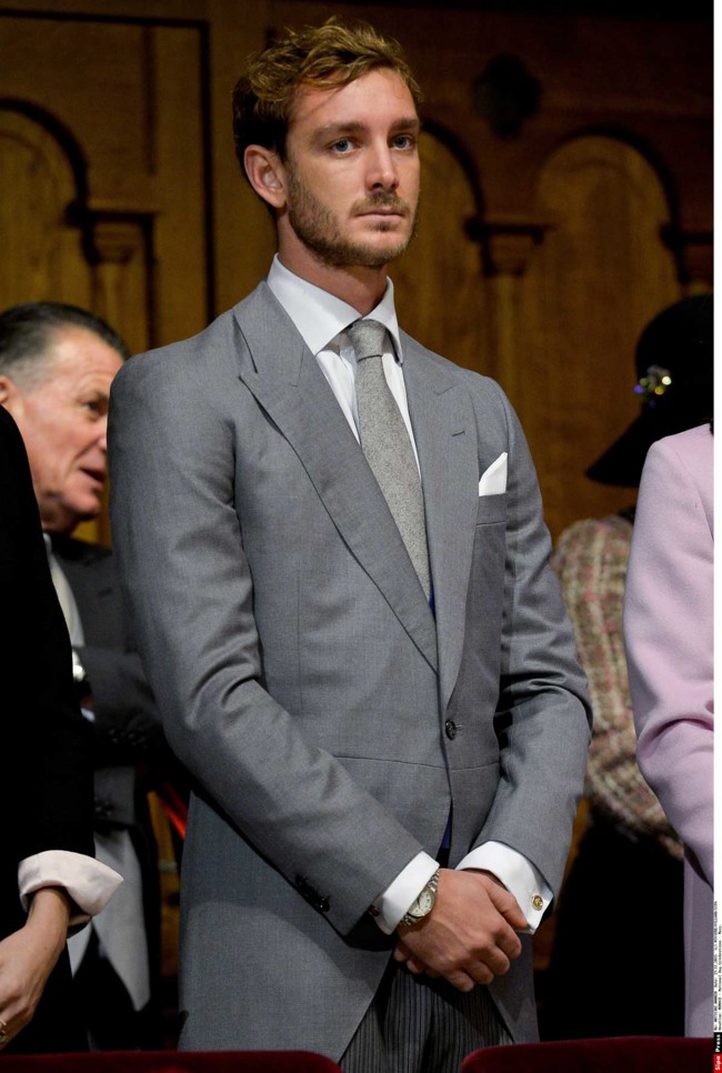 ¿Que todos los príncipes son azules? Pues que quede claro que Pierre, no. Mucho mejor apostar por el gris como él mismo ha hecho hoy con este chaqué con corbata en el que se combinan tres tonos diferentes de este color que, en conjunto, dan muy buen resultado. Eso sí, si hay que ponerle un pero, no habría estado mal que el pantalón fuese un poco más corto y más estrecho. Mención aparte merece esa barba impecablemente cuidada que le favorece bastante.