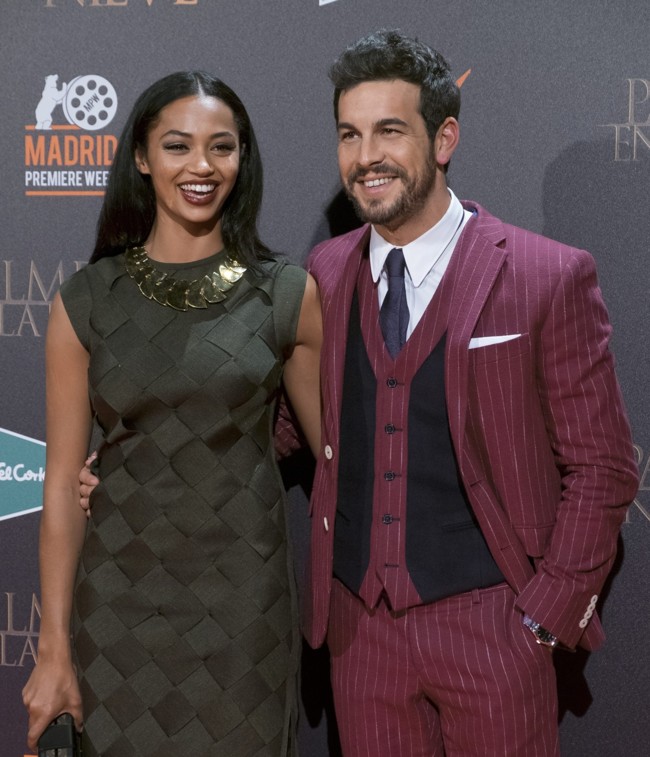 Los experimentos extraños funcionan pocas veces. Y si ayer el que nos sorprendía era Eddie Redmayne con su traje a cuadros, hoy es Mario Casas el que da la nota con un traje de tres piezas con raya diplomática en color marsala, el típico rojo vino o burdeos de toda la vida. Muy moderno, pero no. El actor presumió de novia (la televisiva Berta Vazquez) en el estreno de Palmeras en la Nieve en Madrid.