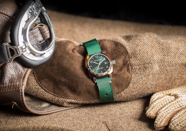 Aunque las correas se plantean como un juego de intercambios. Nos quedamos con el modelo original vendido con la correa NATO verde inglés exclusiva de Briston (nailon). Los relojes Briston se venden en distribuidores autorizados de las principales ciudades españolas.