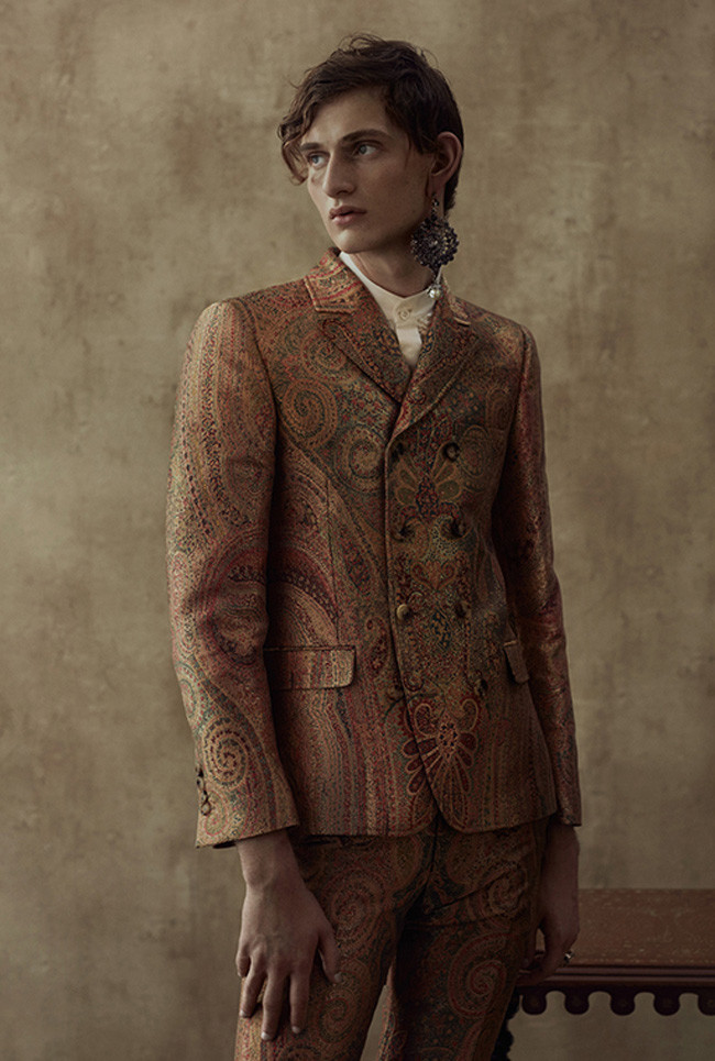 Otro punto destacado de la nueva colección son los diseños ornamentales que con frecuencia se encuentra en la ropa hindú que aparecen reflejados tanto en los estampados como embelleciendo las chaquetas. Una colección no apta para todo el mundo y que, sin embargo, tiene propuestas la mar de interesantes y novedosas.