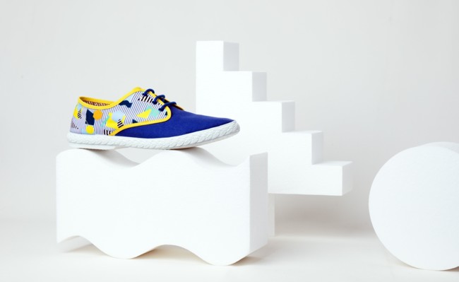 La idea era poder combinar la solvencia zapatera de Maians y la visión creativa de Octaevo a través de una colección única y diferente. El resultado son unas zapatillas donde cada forma gráfica representa un símbolo típico del Mediterráneo; el mar, las olas, un velero, el sol. Queda afrontar el dilema: beige o azul.